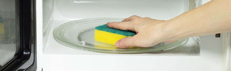 Wipe down the microwave door, including the frame and the inside of the glass with a damp cloth.